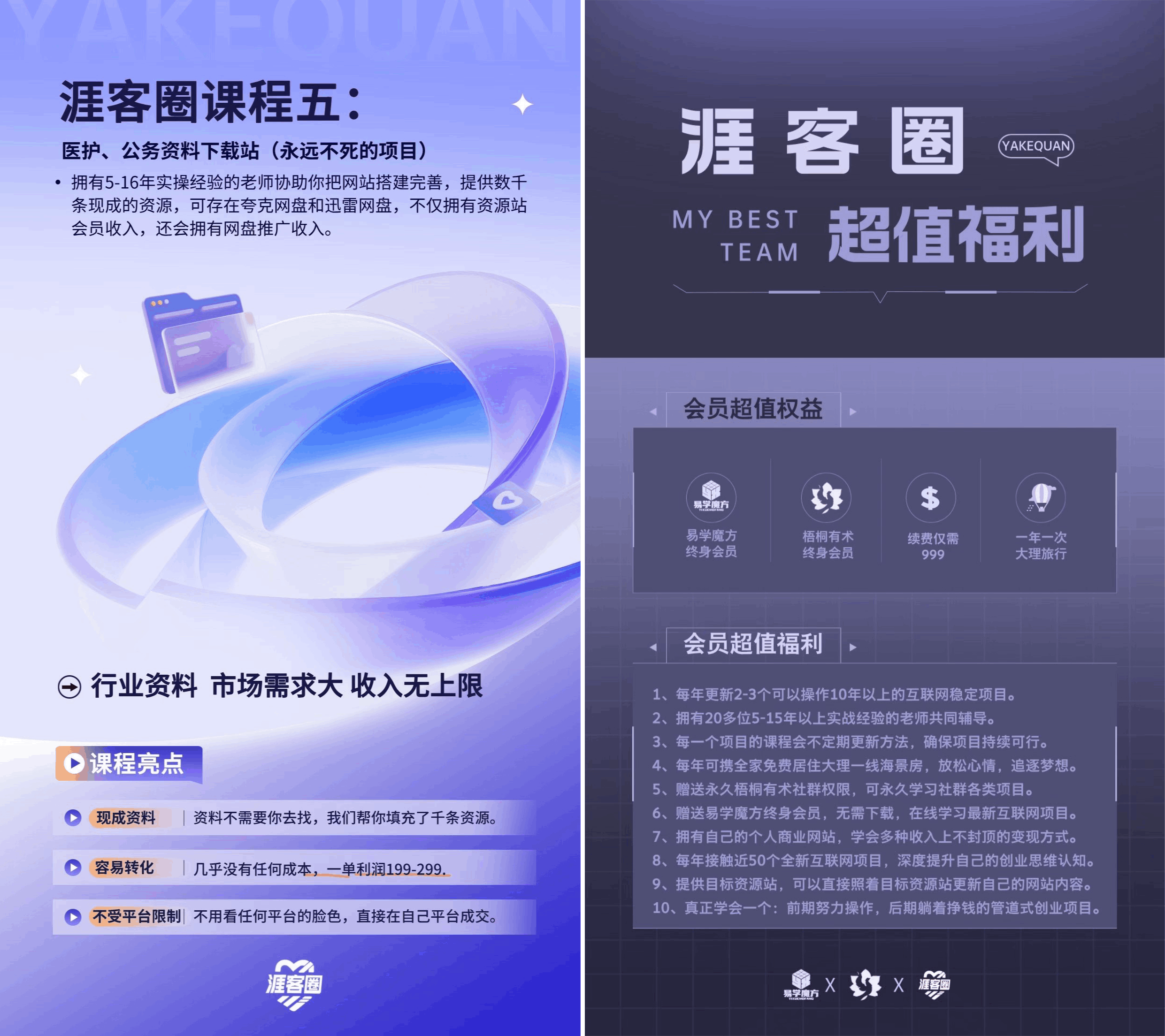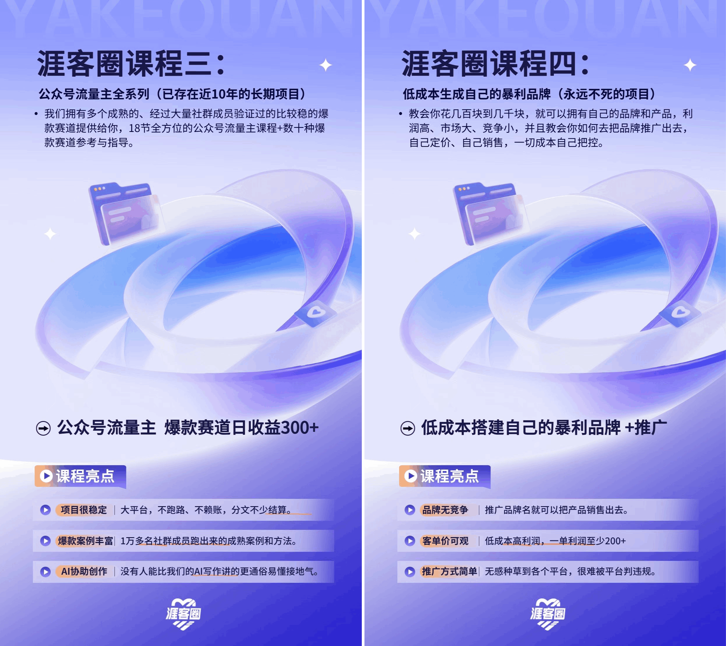 圈子每年会给成员更新2-3个能做5-10年的长期管道项目,20多个实操过的老师全年陪跑,前期咱们把管道打通,后面就算不用天天盯着,也能有持续不断的管道收入,涯客圈项目课程如下: